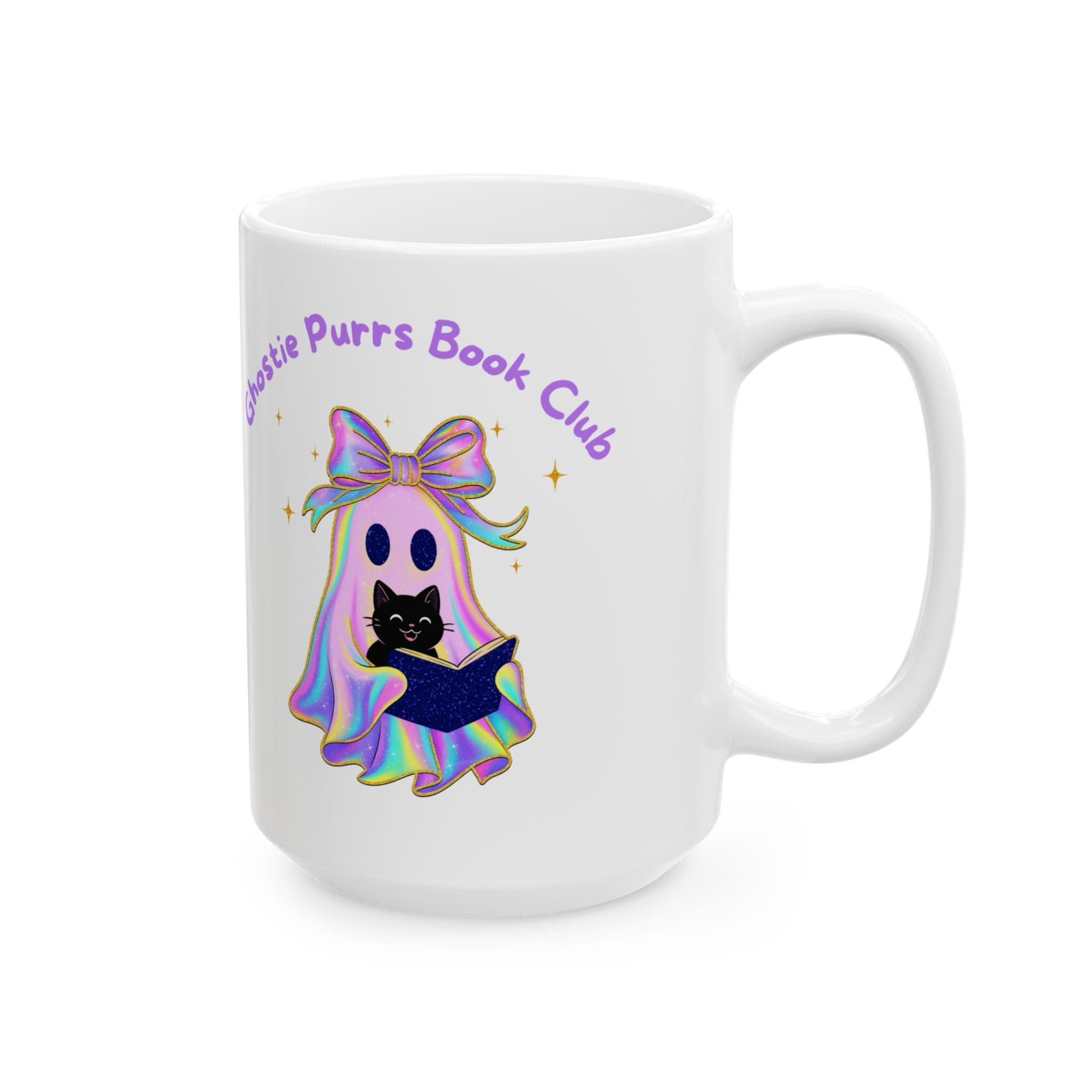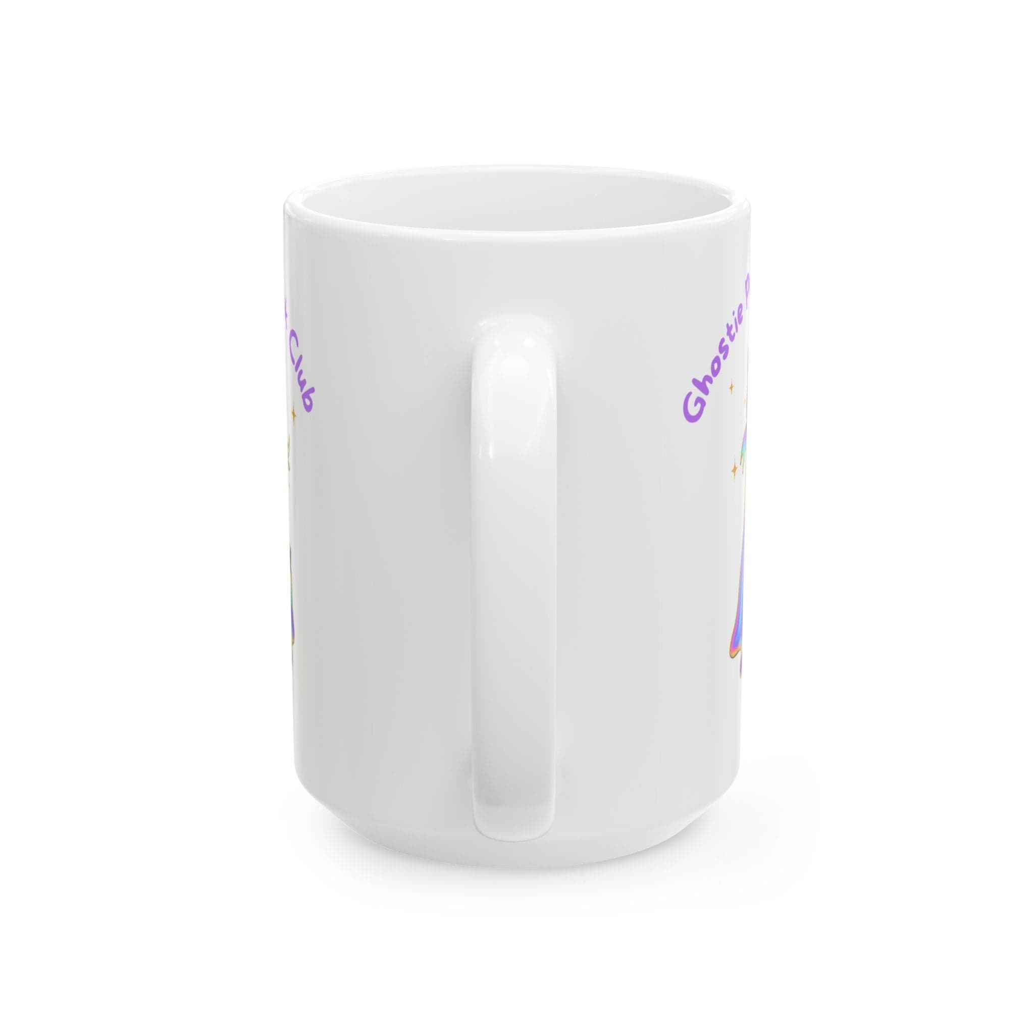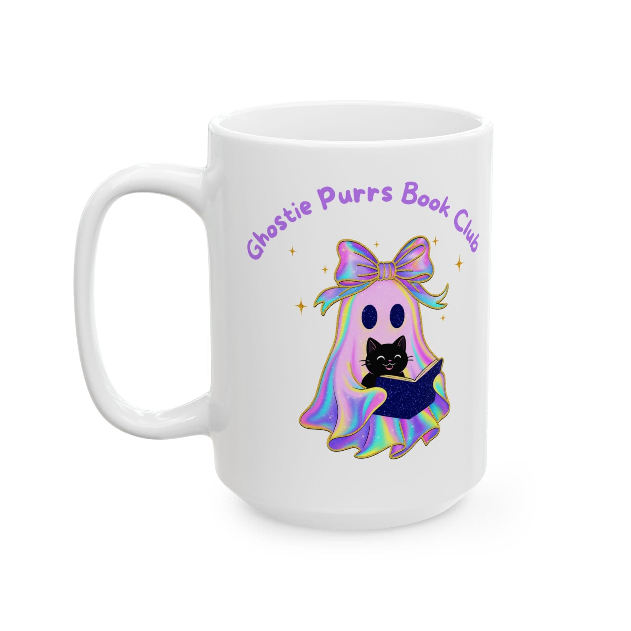 Ghostie Purrs Club Ceramic Mug - Cute Cat Lover's Gift, Rainbow Mug, Fun Drinkware, Unique Coffee Cup, Ideal for Birthday or Halloween